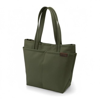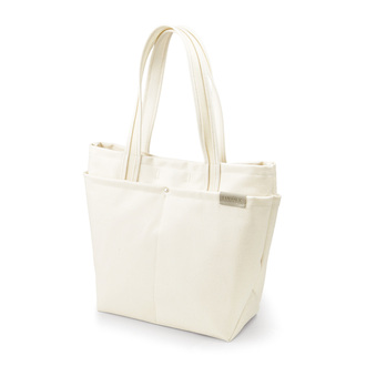 帆布生地の裏側にPVC加工をおり、シンプルだけど自立してカジュアル過ぎないデザインを意識しました